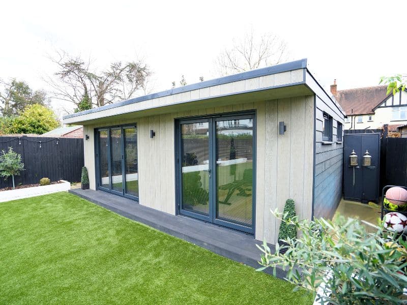 Millboard is considered the most durable cladding option for a garden room in the UK. It is made from a resin mineral composite that is resistant to moisture, rot, warping, and fading. With no annual treatments required, Millboard retains its appearance for decades, even in harsh weather.