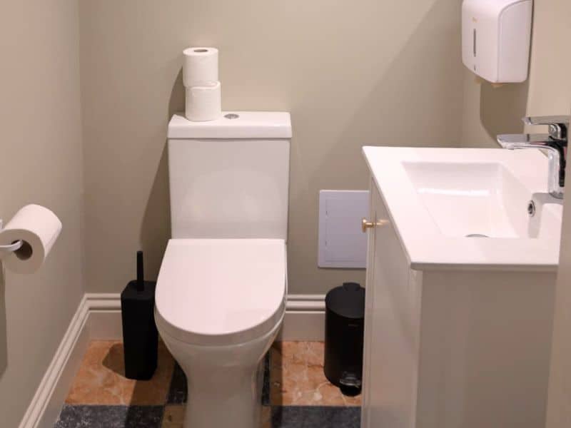 We installed a toilet and sink in the washroom for convenience.
